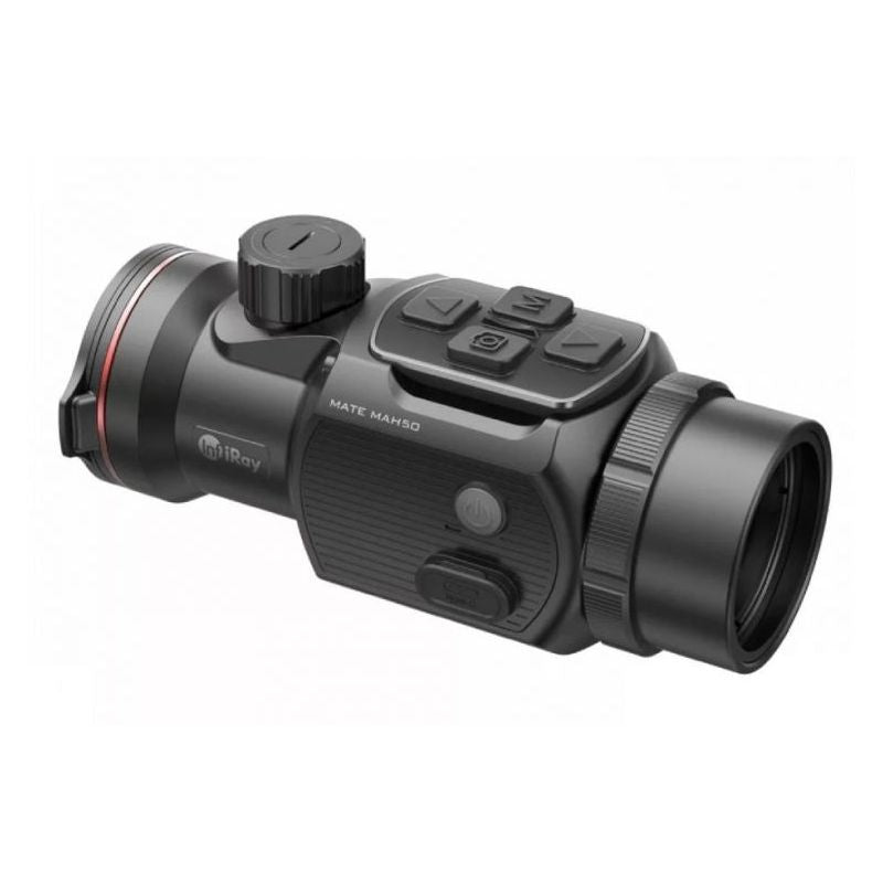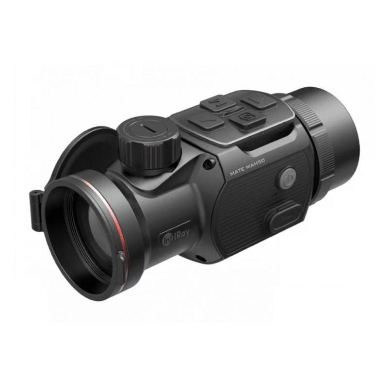 Termovizijska naprava – kamera Infiray MATE MAH 50 serije ClipON, je novi vrhunski model Infiray-a in je izpopolnjena izpeljanka vrhunskega predhodnika CH50W. Model MATE MAH50 je eden najzmoglivejših ClipOn-ov. Serija Mate ustvarja mesto, kjer se natančnost sreča s prenosljivostjo. Ohišje iz magnezijeve zlitine napravi zmanjša težo in izboljša natančnost. Serija MATE podpira praktične funkcije, vključno z odstranljivimi gumbi. Serija MATE je idealen partner za uporabnike, ki želijo kompaktno velikost in veliko kakovost slike. Modela MAH50 in MAL38 lahko izpolnita zahtevo po visoki natančnosti “POI=1MOA”, tudi če se ujema z visoko kalibrskimi puškami. Prav tako je kompaktnejše velikosti kot prejšnji clip-on. MAH50 ima visoko zmogljiv detektor 640*512, 12 μm z NETD manj kot 25 mk. Visokokakovosten optični slikovni sistem ponuja sliko brez popačenj tudi pri uporabi z 10-kratnim dnevnim daljnogledom. Algoritmi izboljšajo kakovost slike z nastavitvijo ustreznih prednastavljenih parametrov glede na različna okolja, gozd, ravnino in mesto. Gumbe je mogoče premakniti in namestiti na katerikoli položaj na vaši puški ali preprosto vstaviti v žep. To lovcem omogoča enostavno upravljanje naprave, tudi ko so osredotočeni na tarčo. Daljinski upravljalnik je podprt z rešitvijo za izjemno nizko porabo energije in se lahko magnetno pritrdi za samodejno polnjenje. Serija Mate ima powerbank kot dodatno baterijo, kar podaljša življenjsko dobo baterije za približno dodatnih 7 ur. Kot dodatno opremo je možno izbrati daljinomer (LRF) in monokularni nastavek IOM, katerega se lahko uporablja tudi samostojno kot optični daljnogled.